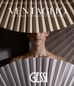 Die Ventaglio-Kollektion, d. h. der Fächer, die, wie der Name schon sagt, von Silhouetten mit einem raffinierten orientalischen Touch geprägt ist, entstand in Zusammenarbeit mit dem in Mailand ansässigen philippinischen Architekten und Innenarchitekten Michael Vincent UY. Wie bei all seinen Projekten balanciert er gekonnt Geschichte und Gegenwart, raffinierte Details und räumliche Harmonie, Anspielungen auf den Orient und das Design-Know-how des Westens aus.